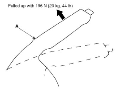 1. Pull the parking brake lever (A) with 196 N (20 kg, 44lbf) force to fully apply the parking brake. The parking brake lever should be locked within the specified number of clicks.