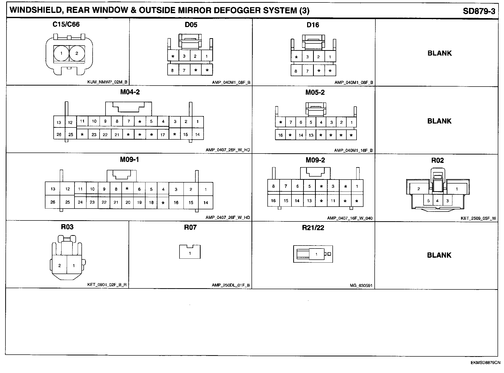 Windshield, Rear Window & Outside Mirror Defogger System Connector Pin Outs: