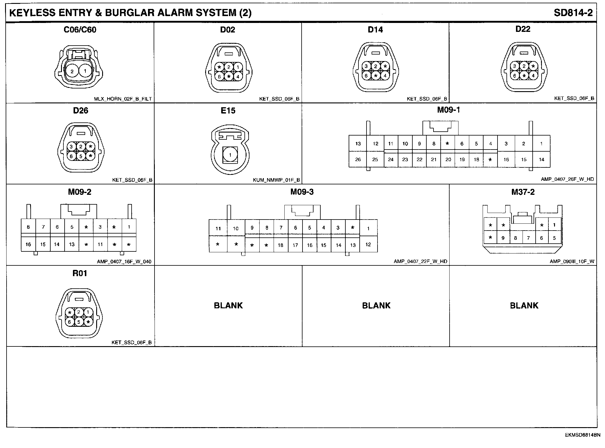 Keyless Entry & Burglar Alarm System Connector Pin Outs: