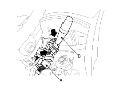 1. Remove the steering column upper and lower shrouds (A) after removing 3 screws.