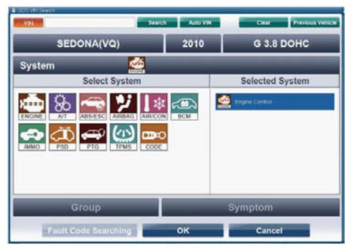 4. With the ignition key ON, turn ON the VCI and GDS tool. Access the GDS vehicle identification number (VIN) screen and configure the vehicle using the AUTO VIN Function.