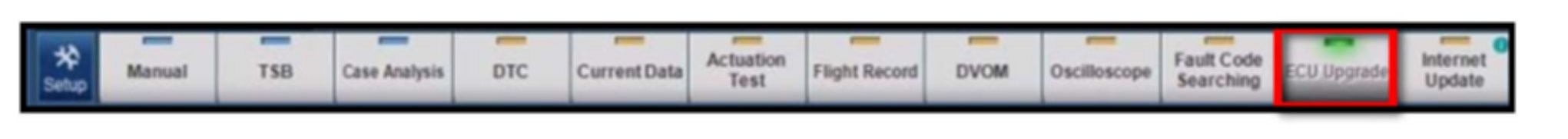 5. In the GDS main screen, select ECU Upgrade from the bottom right-hand corner. Next select Auto Mode, and then Engine. Perform the ECM upgrade in accordance with normal GDS tool ECM upgrade procedures.