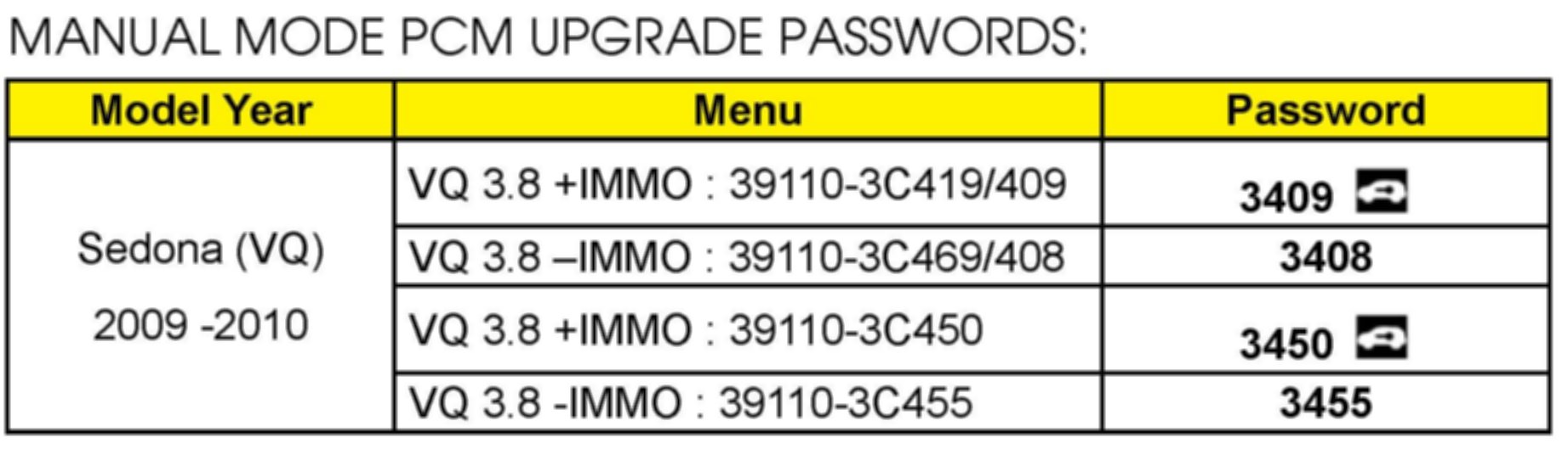 MANUAL MODE PCM UPGRADE PASSWORDS