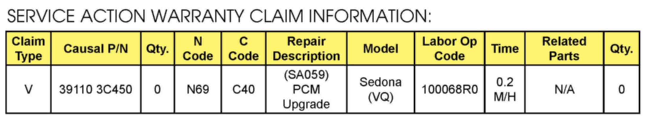 VIN Inquiry data for this repair is provided for tracking purposes only. Kia retailers should reference SA059 when accessing the WebDCS system.