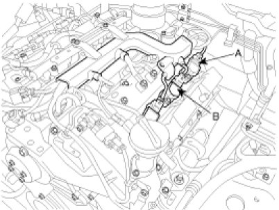 When removing the ignition coil connector, pull the lock pin(A) and push the clip(B).