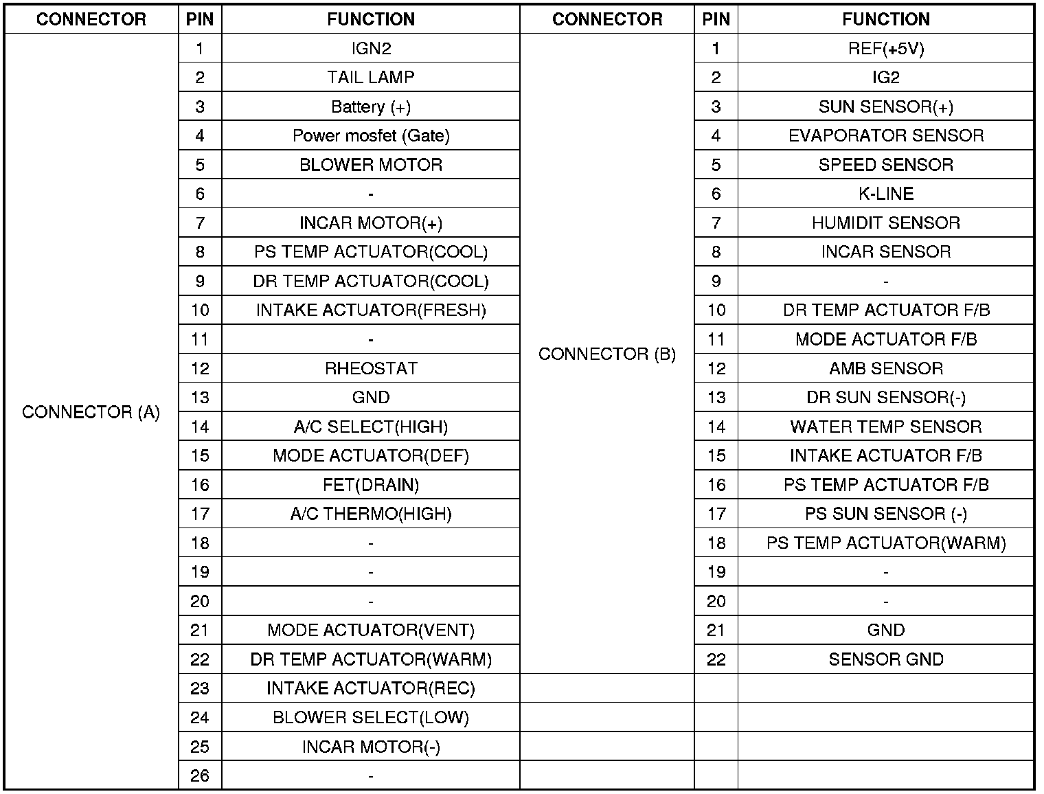 [CONNECTOR PIN FUNCTION]