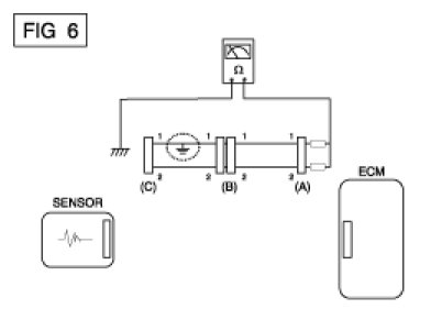 A. Disconnect connectors (A), (C) and measure for resistance between connector (A) and Chassis Ground as shown in [FIG. 6].