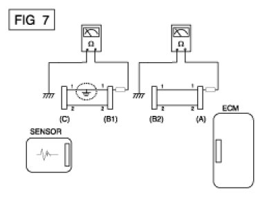 B. Disconnect connector (B), and measure the resistance between connector (A) and chassis ground, and between (B1) and chassis ground as shown in [FIG. 7].