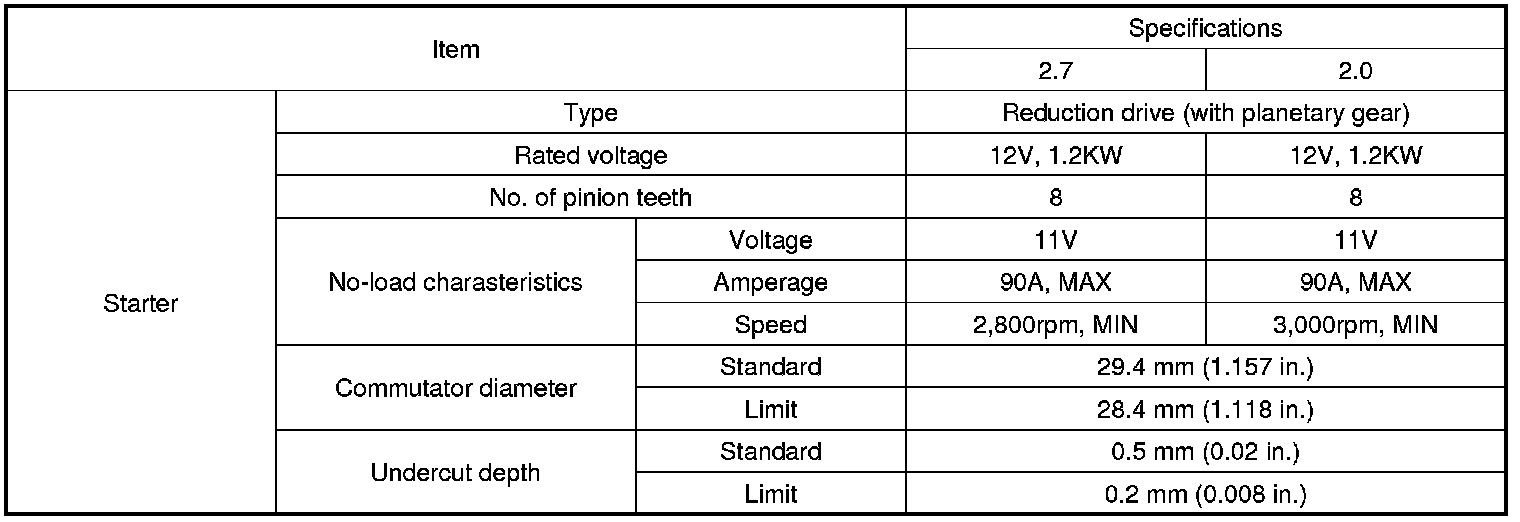 Starting System: Specifications