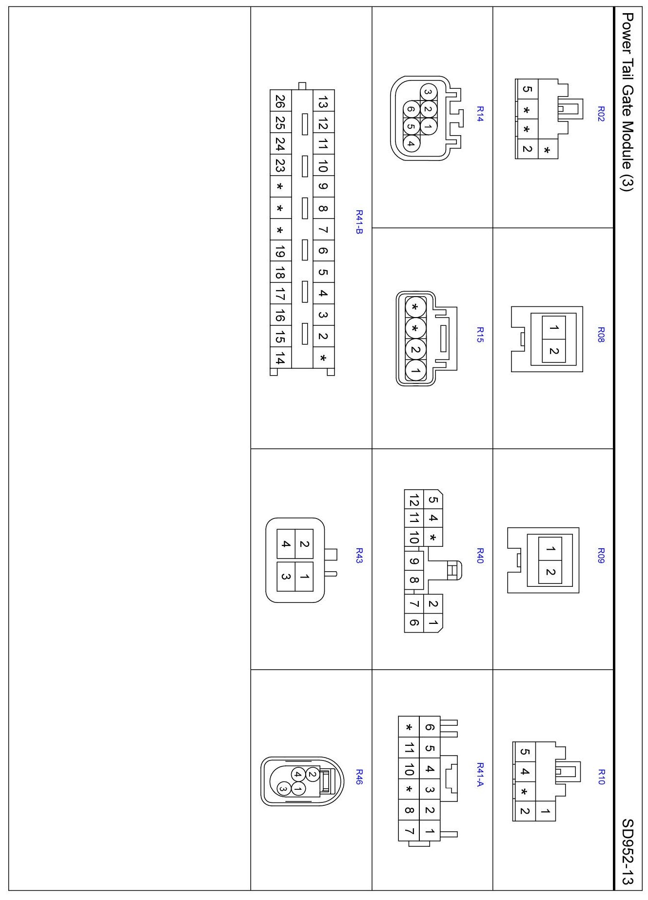 Power Tail Gate Module (3) Connector Pin Outs: