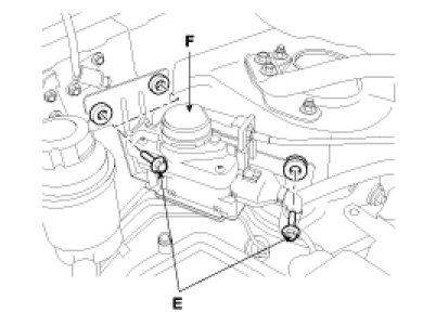 3. Loosen the three mounting bolts(E), and remove the actuator(F) with the bracket.