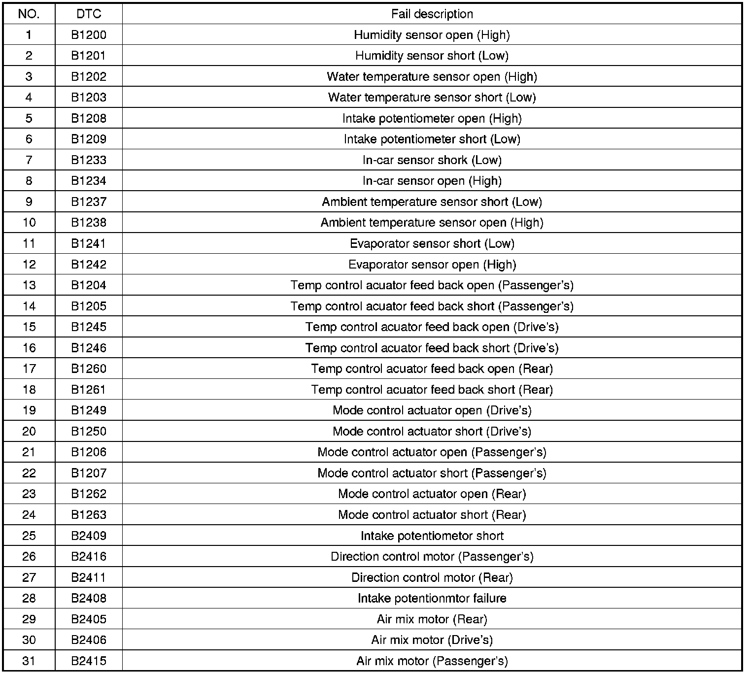 (1) In-car temperature sensor: Control with the value of 25°C(77°F)