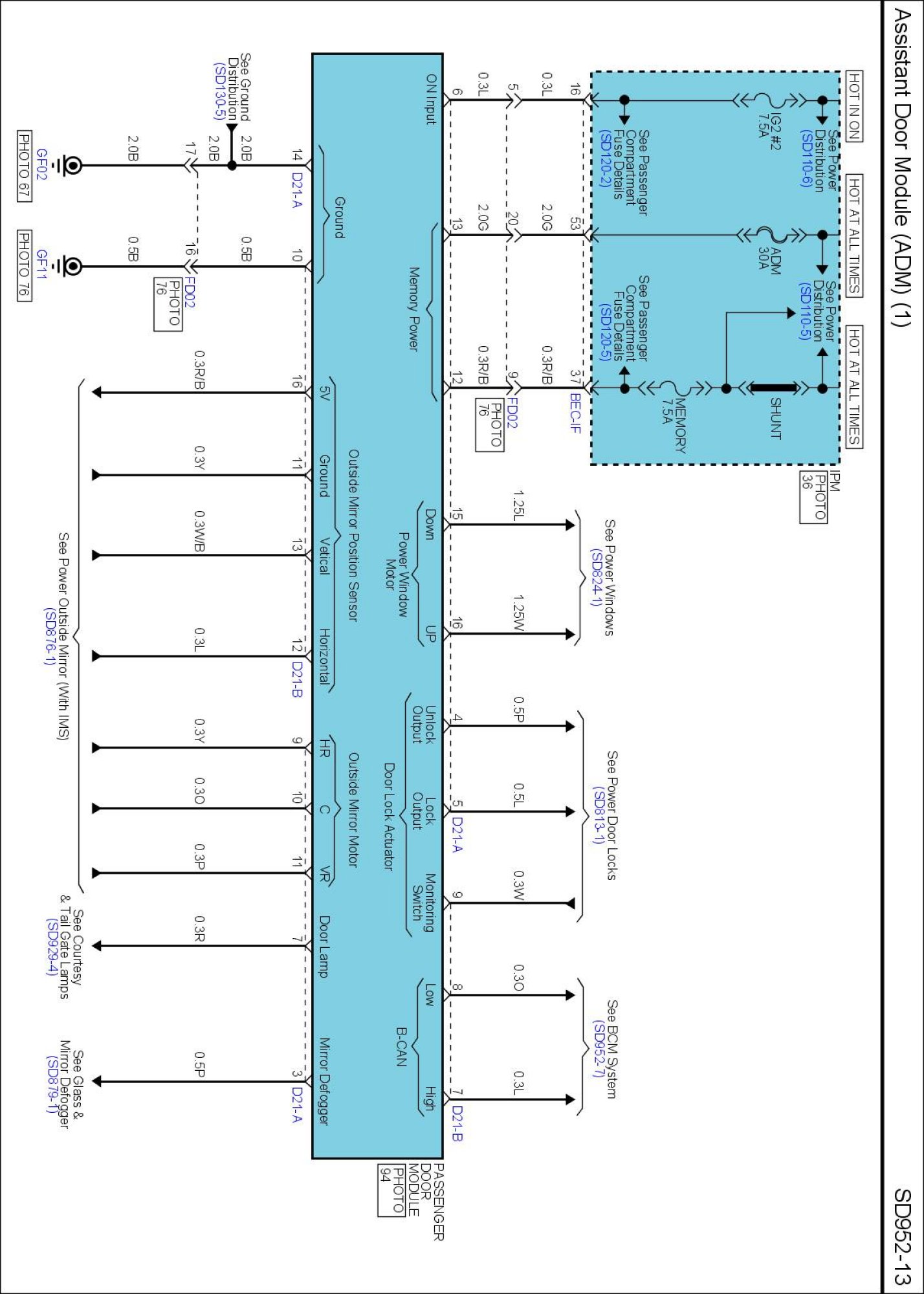 Driver Door Module (ADM) (2) Connector Pin Outs: