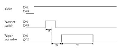 (1) Turn Washer switch ON in IGN2 ON and turn Wiper low relay ON after T1.