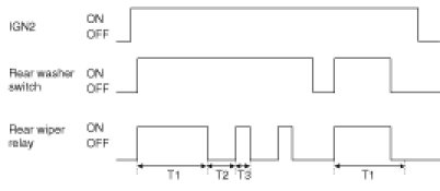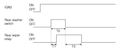(2) With Rear washer switch is ON with IGN2 switch ON, turn ON Rear wiper relay output after T1.