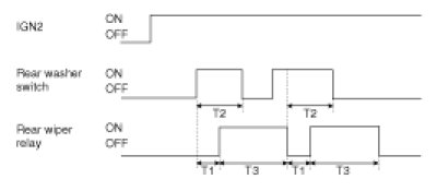 However, Rear washer switch input generated during operating Rear wiper relay is ignored, and received following the operation of Rear wiper relay.