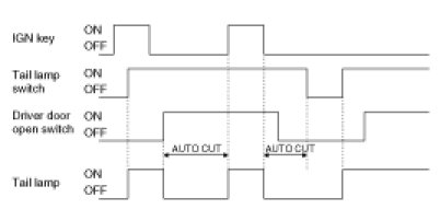 (4) If IGN KEY is ON again after auto power off, Tail lamp is ON and AUTO CUT function is disabled.