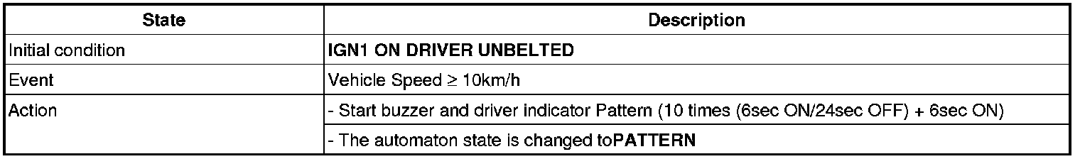 4 Normal 6s buzzer: If IGN1=1 with Belted->Unbelted, buzzer is warning.