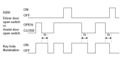 1. If driver door open switch ON or assist door open switch ON with IGN1 OFF , turn ON key hole illumination.