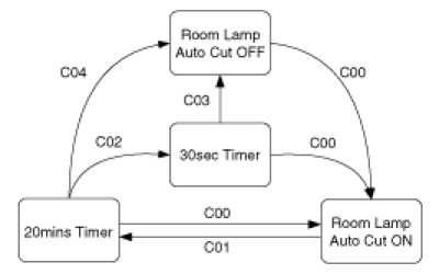 (4) C03: If 3sec timer elapsed then room lamp auto cut = OFF.
