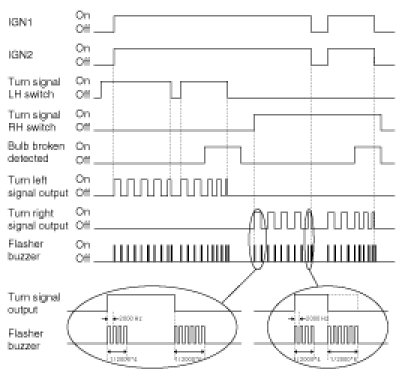 Like the turn signal flashing, if bulb(or LED) failure is detected, flashing frequency is doubled. But it is Only possible in IGN1 and IGN2 ON (IGN1 = ON and IGN2 = ON).