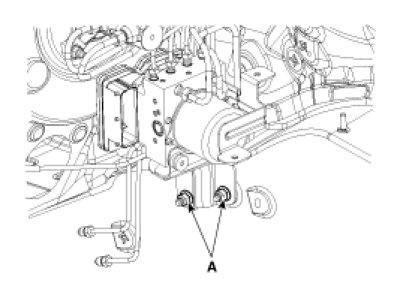 5. Loosen the ABS HECU bracket nuts(A), then remove HECU and bracket.