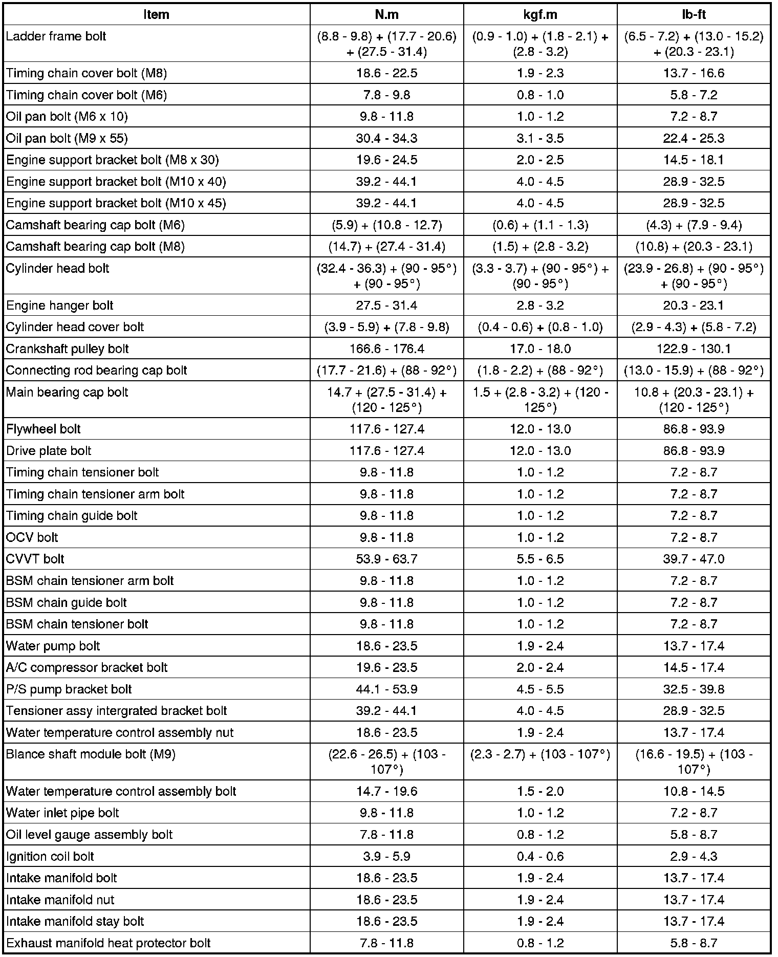 Tightening Torques