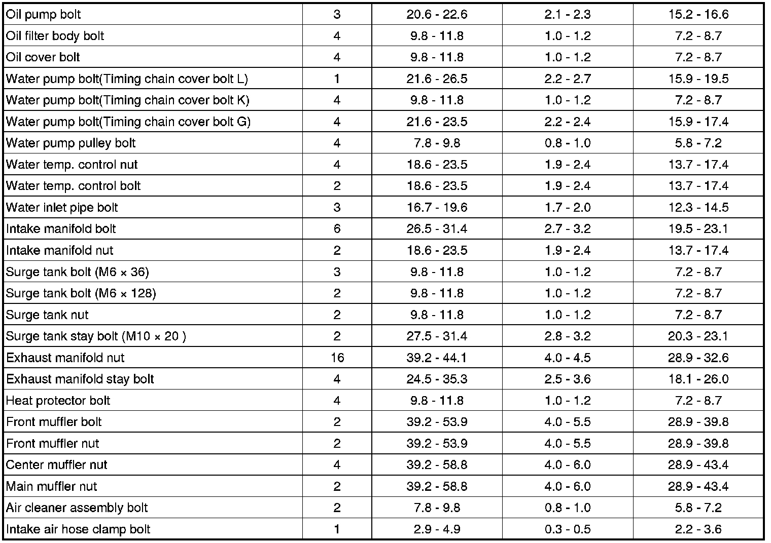 Tightening Torques