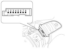 2. Measure voltage between terminals on the harness side connector when each function switch is ON (switch is depressed).