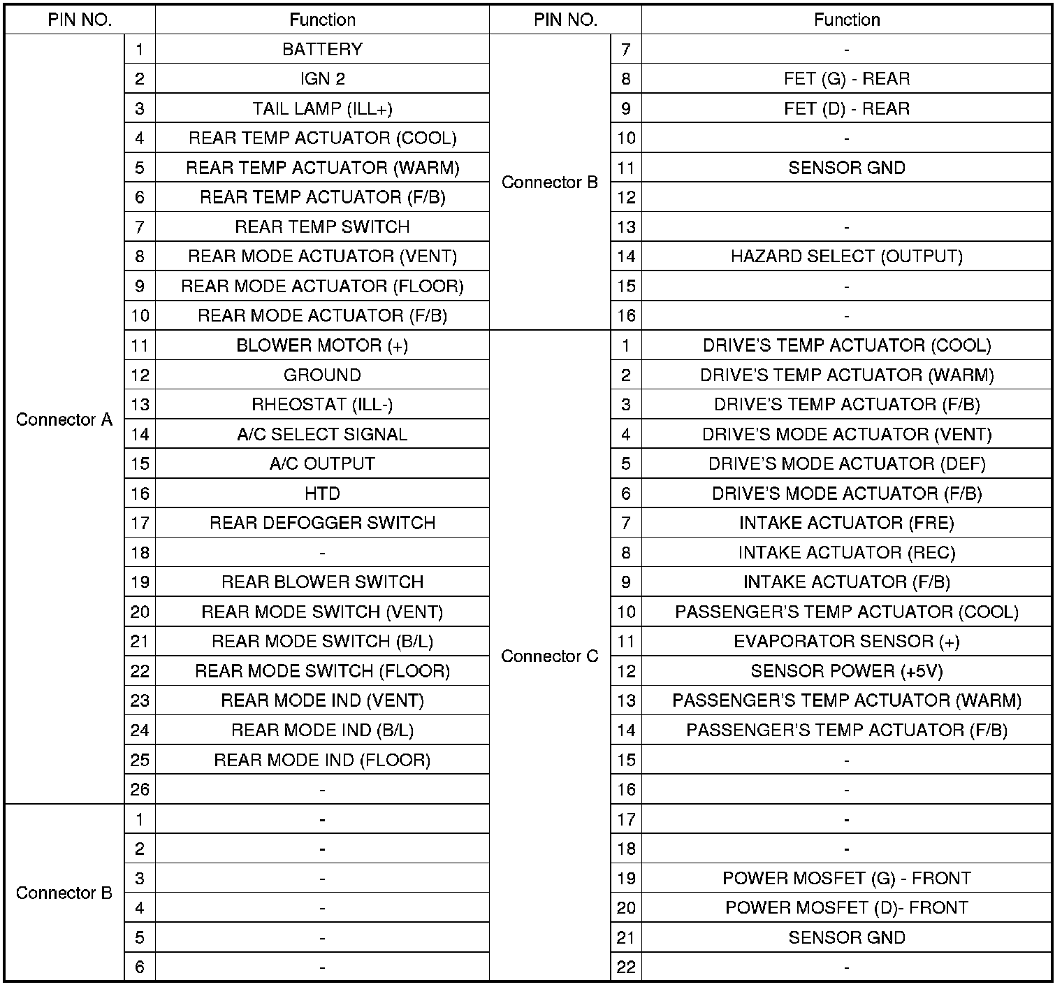 CONNECTOR PIN FUNCTION