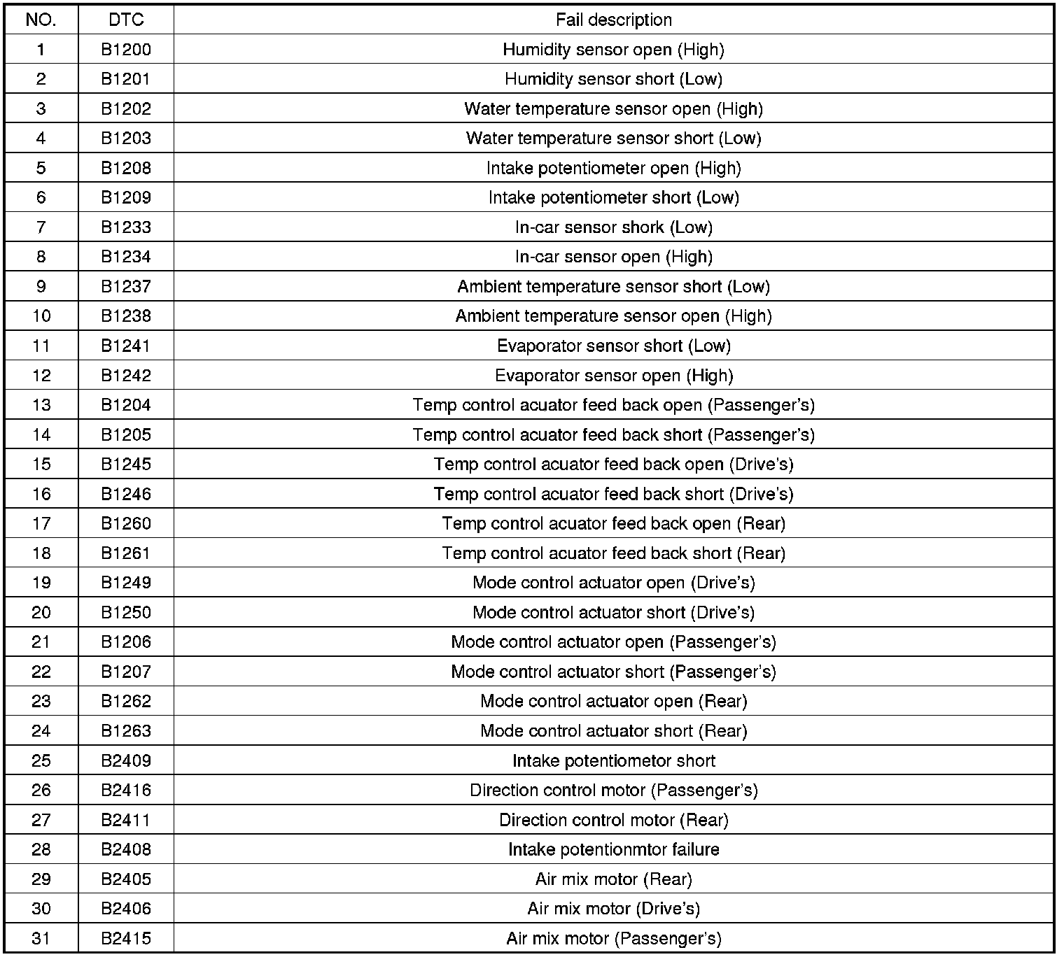 (1) In-car temperature sensor: Control with the value of 25°C(77°F)