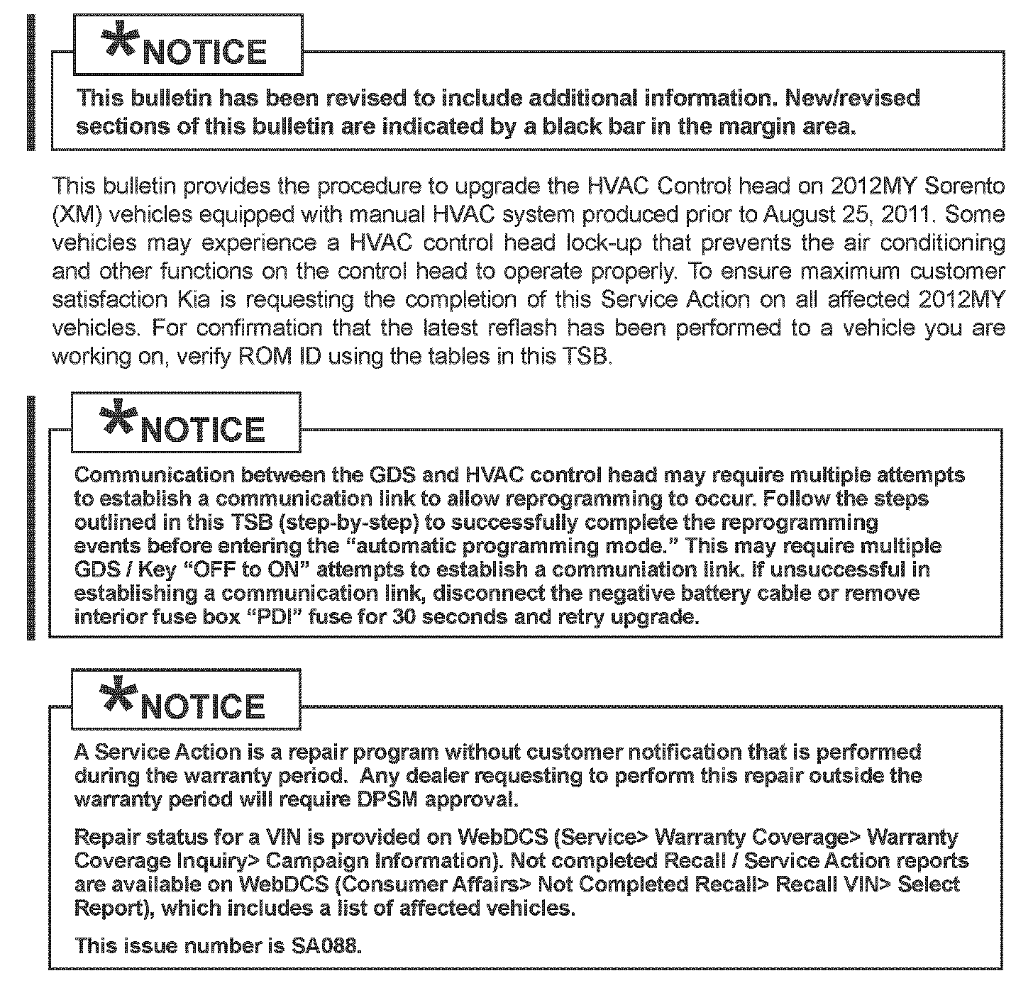 VIN Inquiry data for this repair is provided for tracking purposes only Kia retailers should reference SA088 when accessing the WebDCS system.