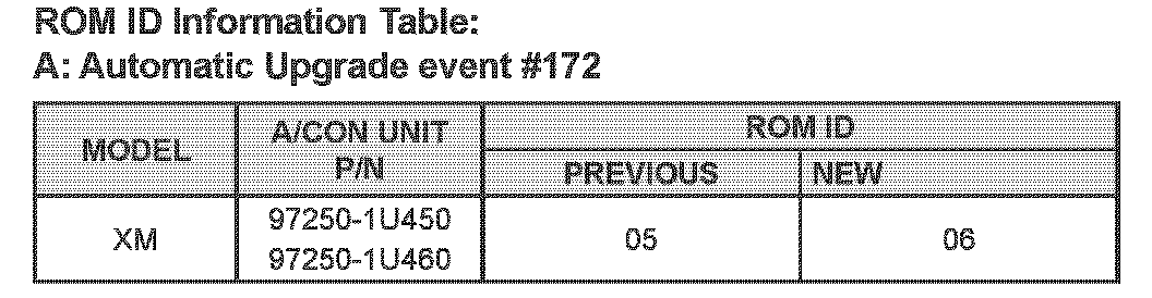 To verify the vehicle is affected, be sure to check the Calibration Identification of the vehicles Control Head ROM ID and reference the Information Table as necessary.