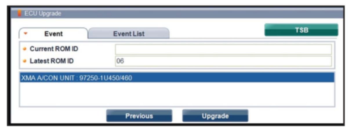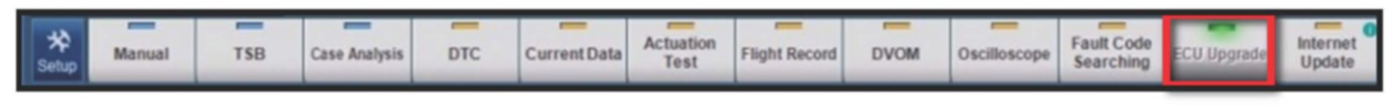 6. Once back at the GDS Main Screen, select ECU Upgrade from the bottom right-hand corner. Next select Auto Mode, and then Air/Con. Perform the upgrade in accordance with normal GDS tool upgrade procedure.s
