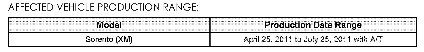 AFFECTED VEHICLE PRODUCTION RANGE
