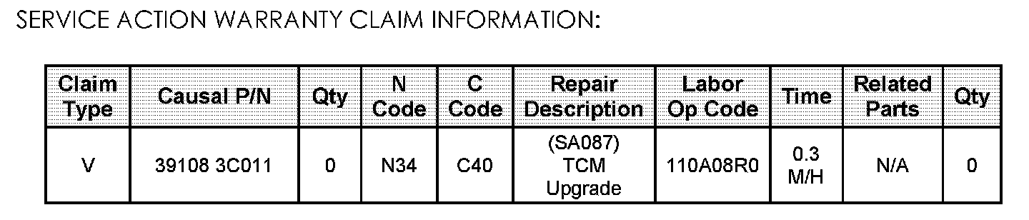 Campaign SA087 - TCM Update For A/T Noise/Shock