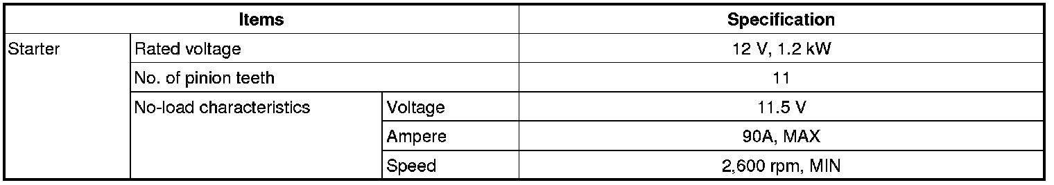 Starting System: Specifications