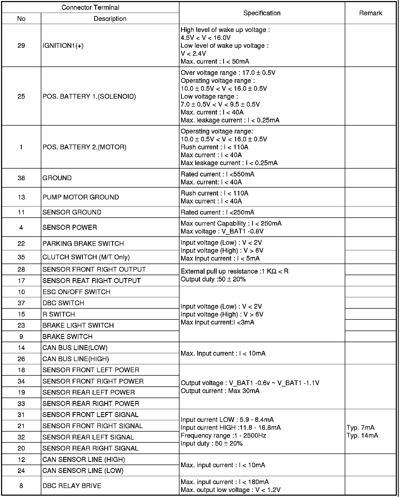 ESC connector input/output