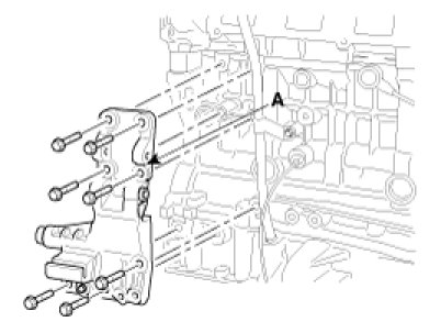12. Remove the tensioner assembly integrated bracket (A).