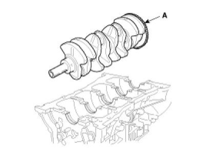 23. Lift the crankshaft (A) out of the engine, being careful not to damage journals.
