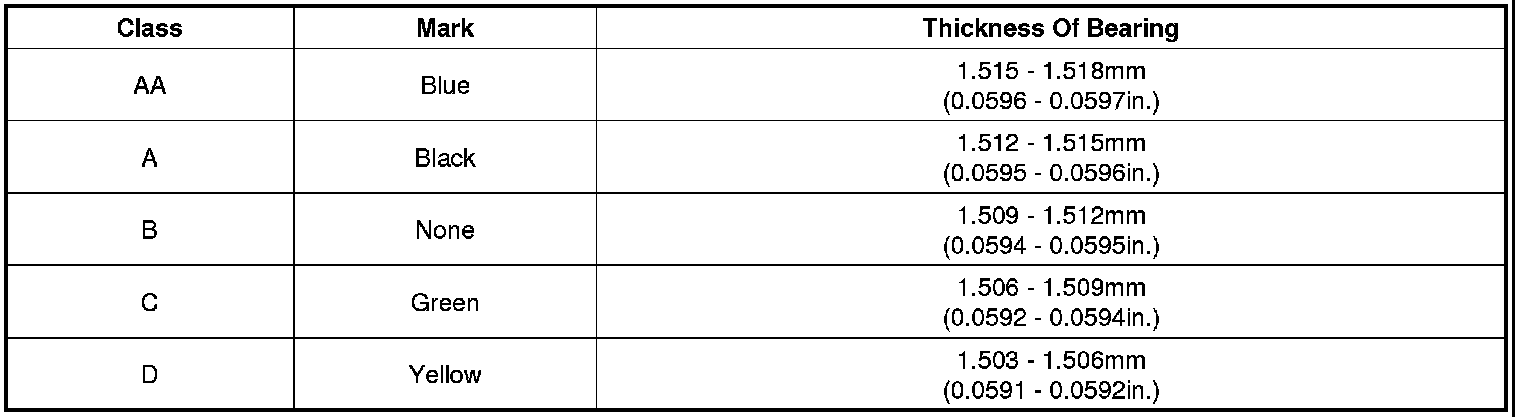 (7) If the plastigage shows the clearance is still incorrect, try the next larger or smaller bearing (the color listed above or below that one), and check clearance again.