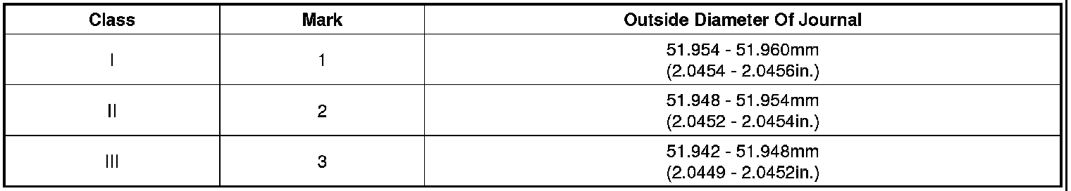 If the proper clearance cannot be obtained by using the appropriate larger or smaller bearings, replace the crankshaft and start over.
