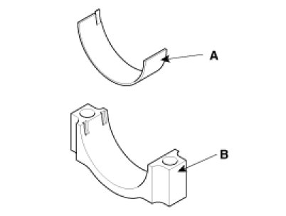 (2) Install the bearings(A) in the connecting rod and connecting rod cap(B).