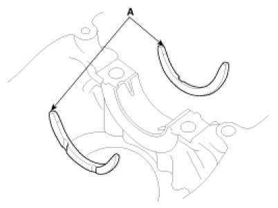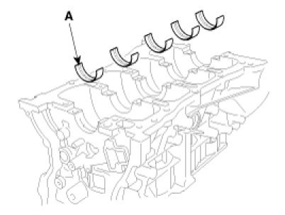 (1) Align the bearing claw with the claw groove of the cylinder block, push in the 5 upper bearings(A).