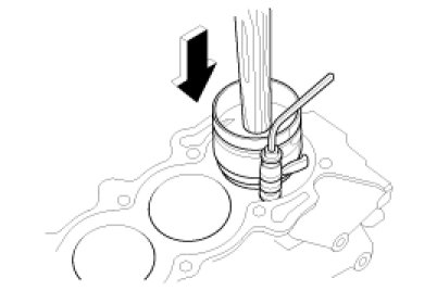 (2) Install the ring compressor, check that the bearing is securely in place, then position the piston in the cylinder, and tap it in using the wooden handle of a hammer.