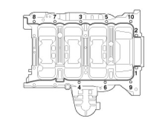 (2) Install and uniformly tighten the 10 bearing cap bolts, in several passes, in the sequence shown. (with specified torque 29.4N.m (3.0kgf.m, 21.7lb-ft))