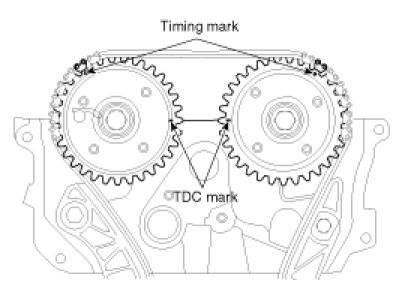 Before removing the timing chain, mark the timing chain with an identification based on the location of the sprocket because the identification mark on the chain for TDC (Top Dead Center) can be erased.