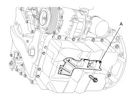 19. Install the engine mounting bracket (A) and connect the ground cable.