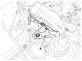 8. Install timing chain auto tensioner (A) and remove set pin.