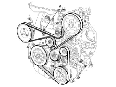 15. For release the tension, turn the drive belt tensioner counterclockwise then remove the drive belt (A).